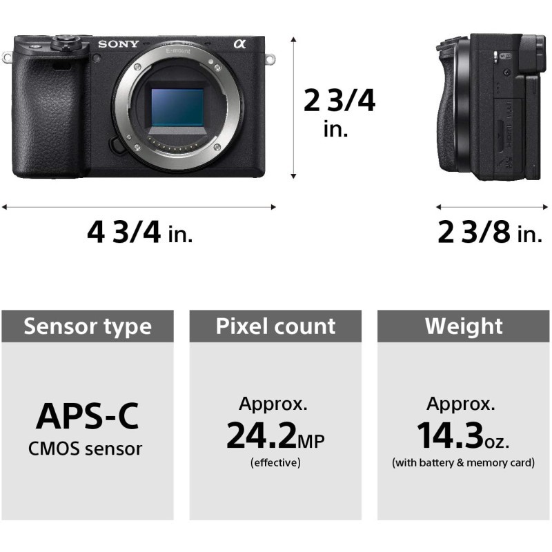 索尼 Alpha a6400 无反相机:紧凑型 APS-C 可互换镜头数码相机,带实时眼自动对焦、4K 视频和翻转触摸屏 - E 型兼容相机 - ILCE-6400/B 仅机身